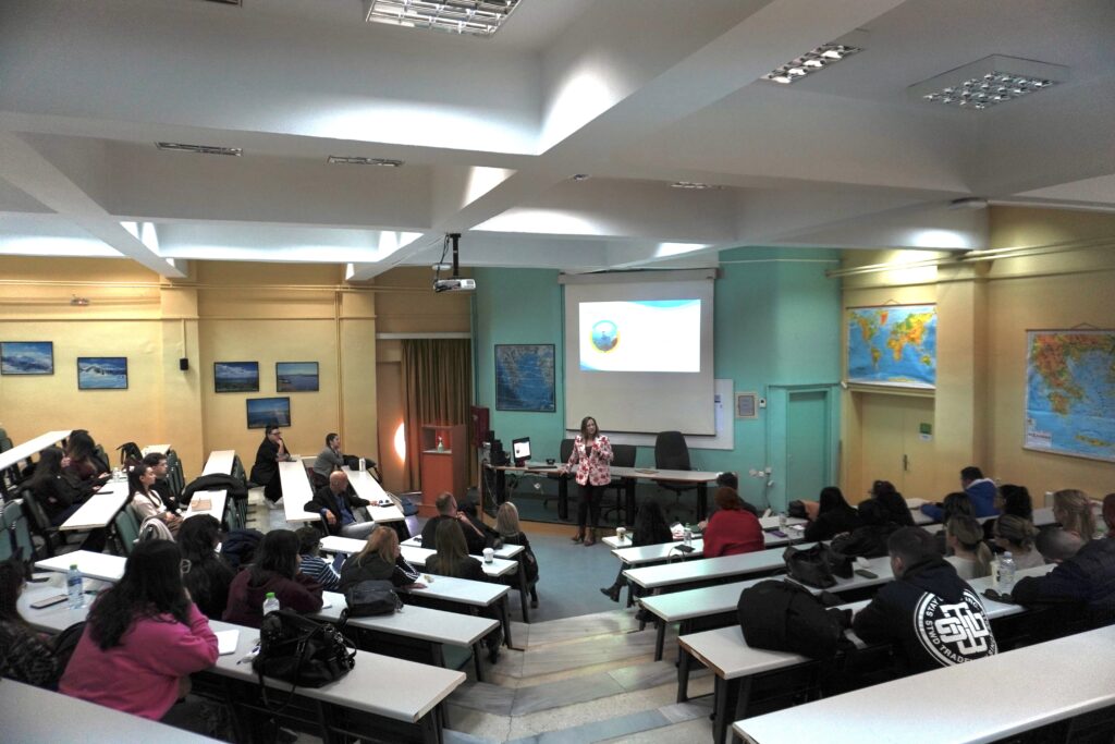 Chrysi Laspidou talking to the audience of the University of Thessaly