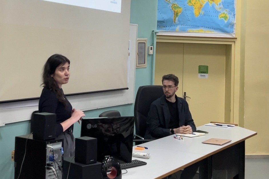 Georgia Tseva and Argyrios Balatsoukas presenting the ENHANCE project